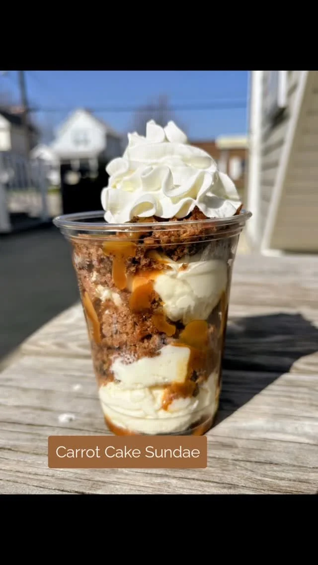 We offer a daily mix of house made cookies & brownies year round, which allows for us to create some fun items — ice cream sandwiches, brownie sundaes, etc. OFF SEASON: we usually add cakes, muffins, scones & cheesecakes to the mix, time permitting!